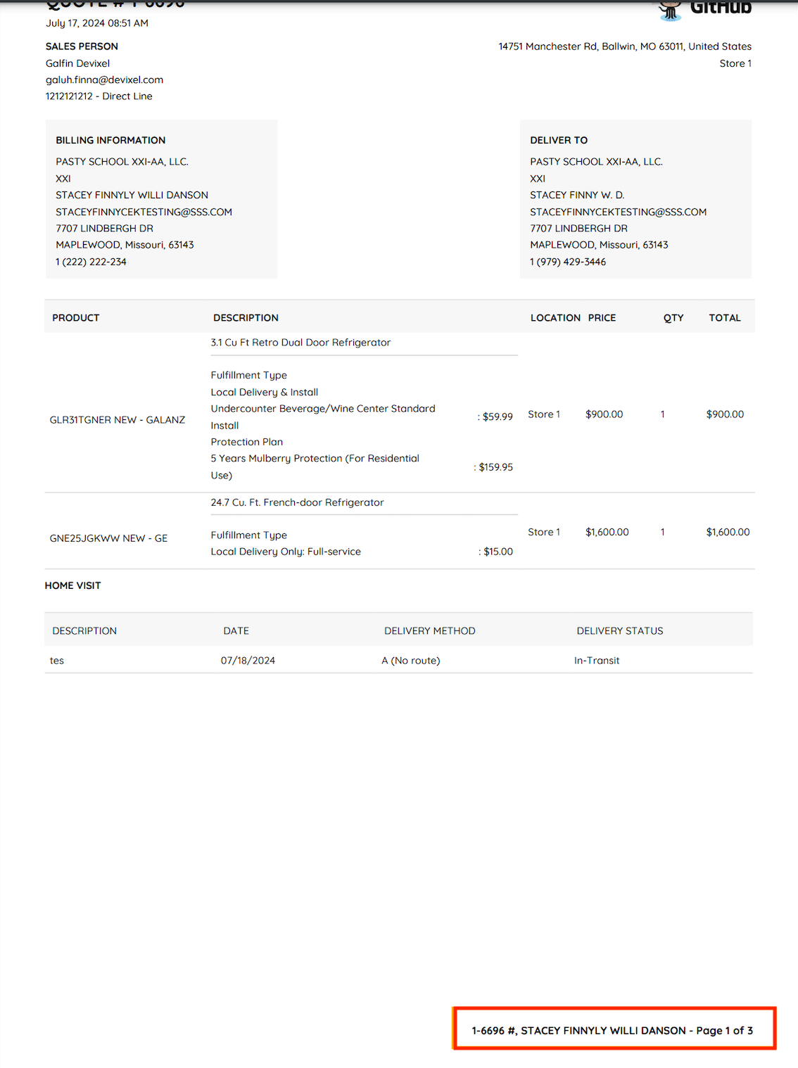 We have added an update to our printing functionality to enhance document management and organization. This new feature adds vital information to the footer of each printed page, including the page number, order number, and customer name, along with a total page count.
