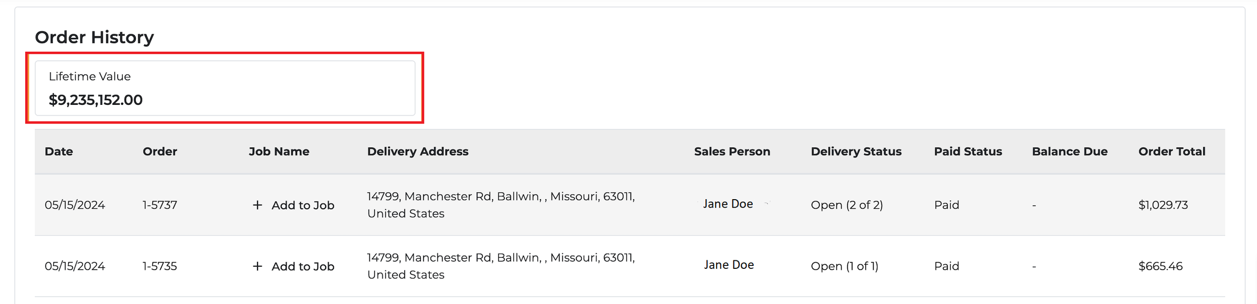 We have added a new enhancement to the order history section on the customer details page. A new section called ‘Lifetime Value’ has been added to the Order History on the Customer Page. This section is designed to display the cumulative total of all order amounts from a specific customer, giving a clear and concise view of the customer’s total spending.