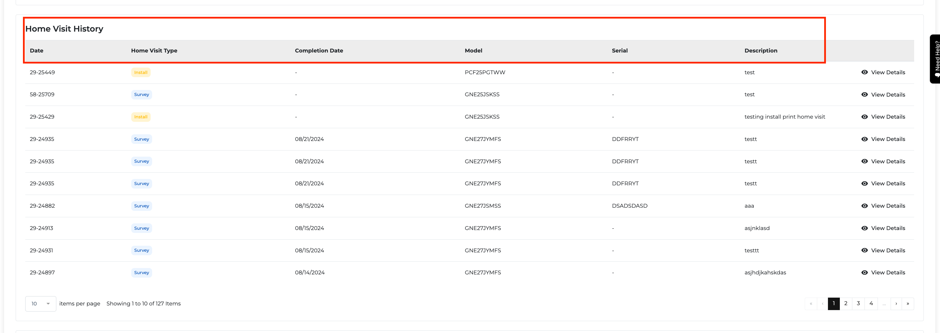 A dedicated section has been added to the Customer Profile page called "Home Visit History." This section records and displays all home visits associated with a customer's orders, offering easy access to important service details.