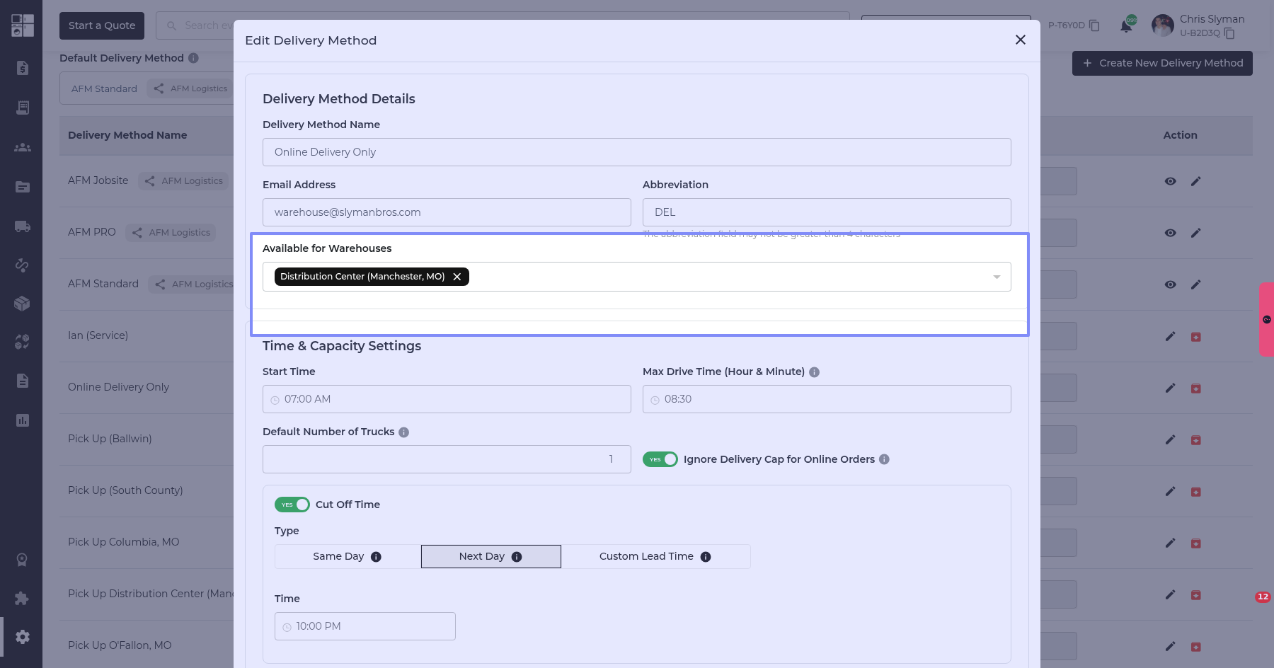 Please add available warehouses to linked partners for delivery providers