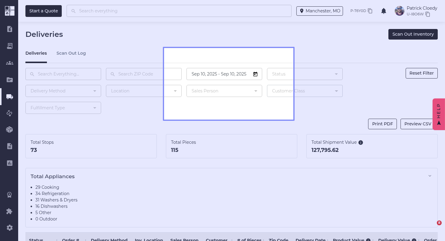 Delivery pages calender is not working properly. It will not select the day that i am selecting but rather just staying on the 10th.