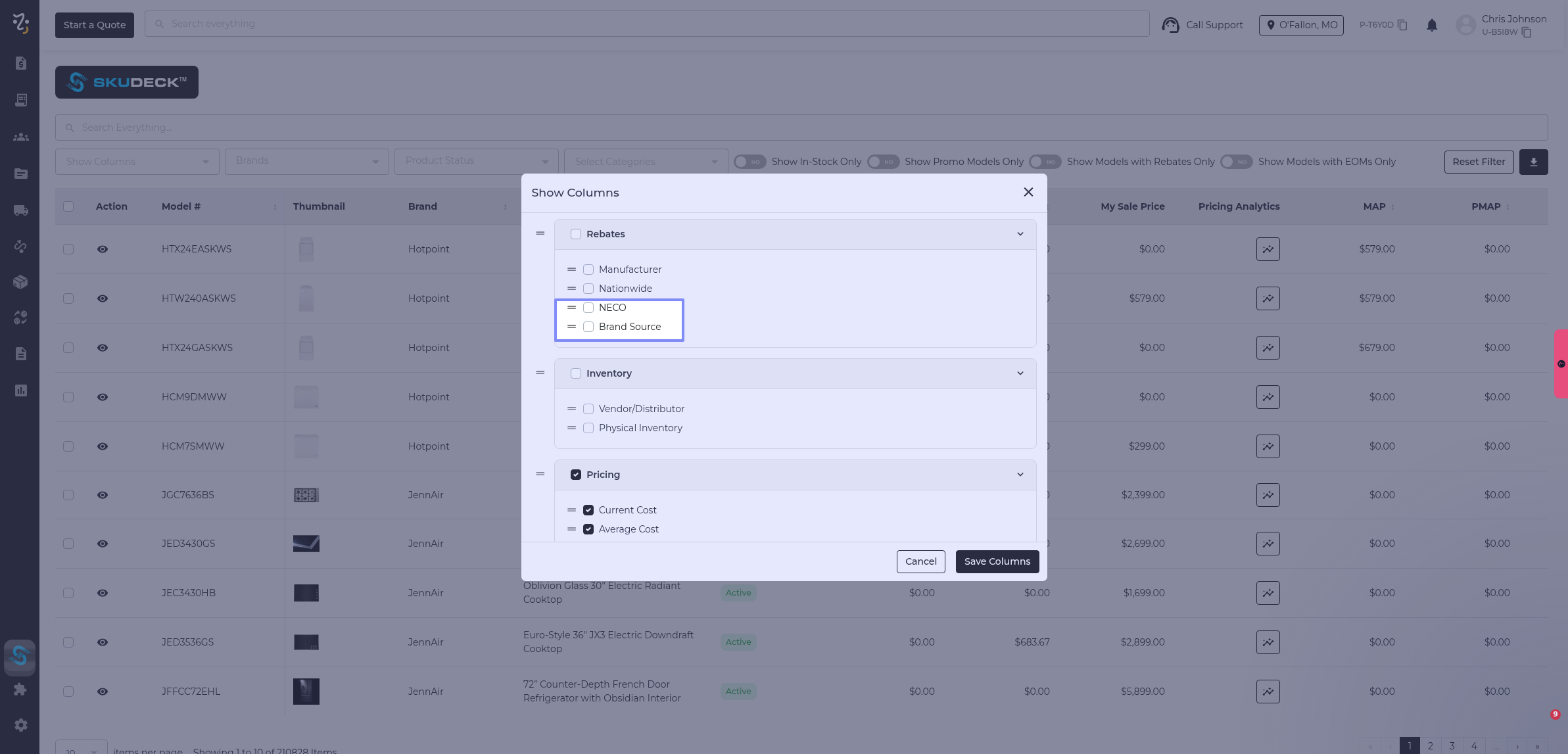 Nationwide members should not see options for NECO or BrandSource rebates. And the oposite goes for DMI and ADC members, they should only see NECO and not see BrandSource or Nationwide rebates.