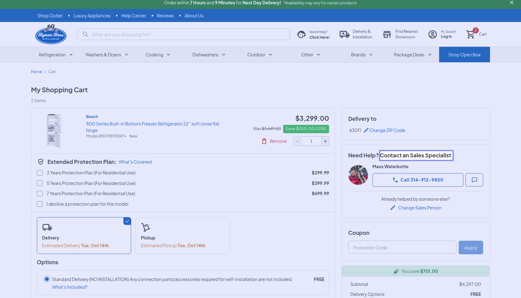 Should be “a”, not “an”. So it should be like this: “Contact a Sales Specialist”