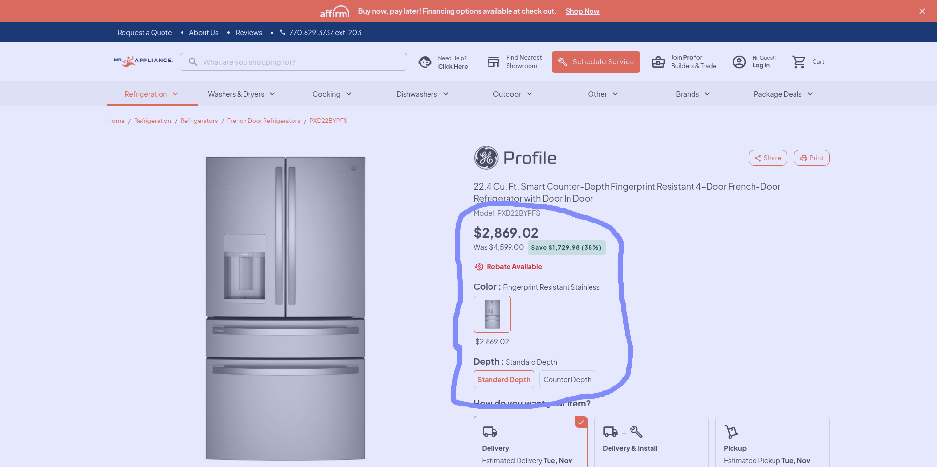 The tabs seem to be listed backwards. The PXD is counter depth when the PVD is standard depth.